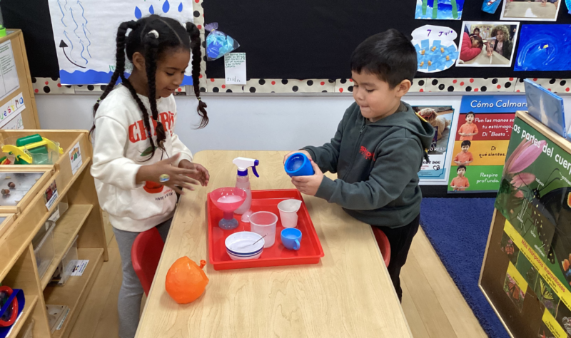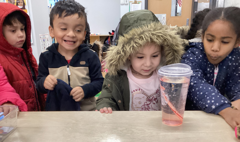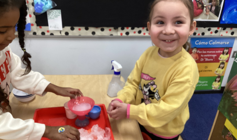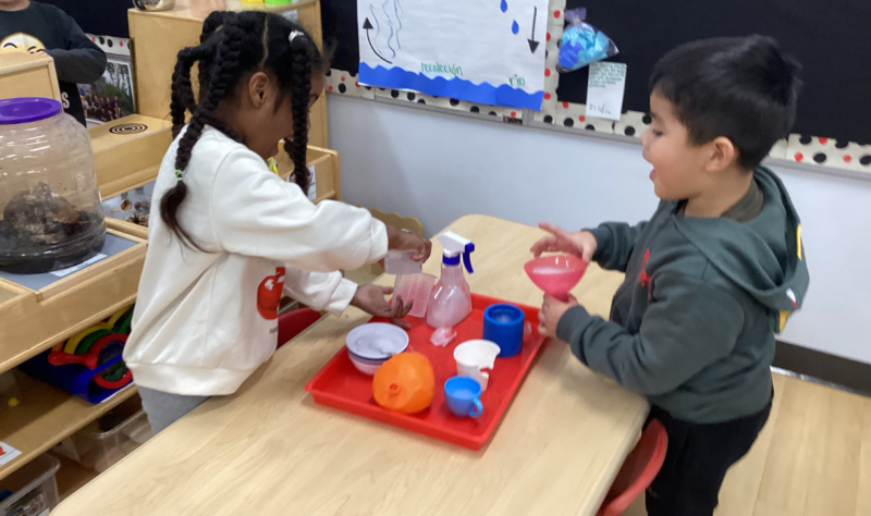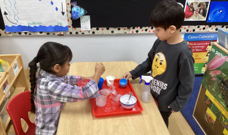 La mejor manera para que los estudiantes aprendan sobre las diferentes formas y propiedades del agua es a través de la exploración práctica. En su estudio sobre el agua, la clase de la Sra. Martínez y la Sra. Ramos está aprendiendo mediante actividades prácticas. La clase está investigando si el agua puede derretir un candy cane y aprendiendo sobre las diferentes etapas del agua, de sólido a líquido.