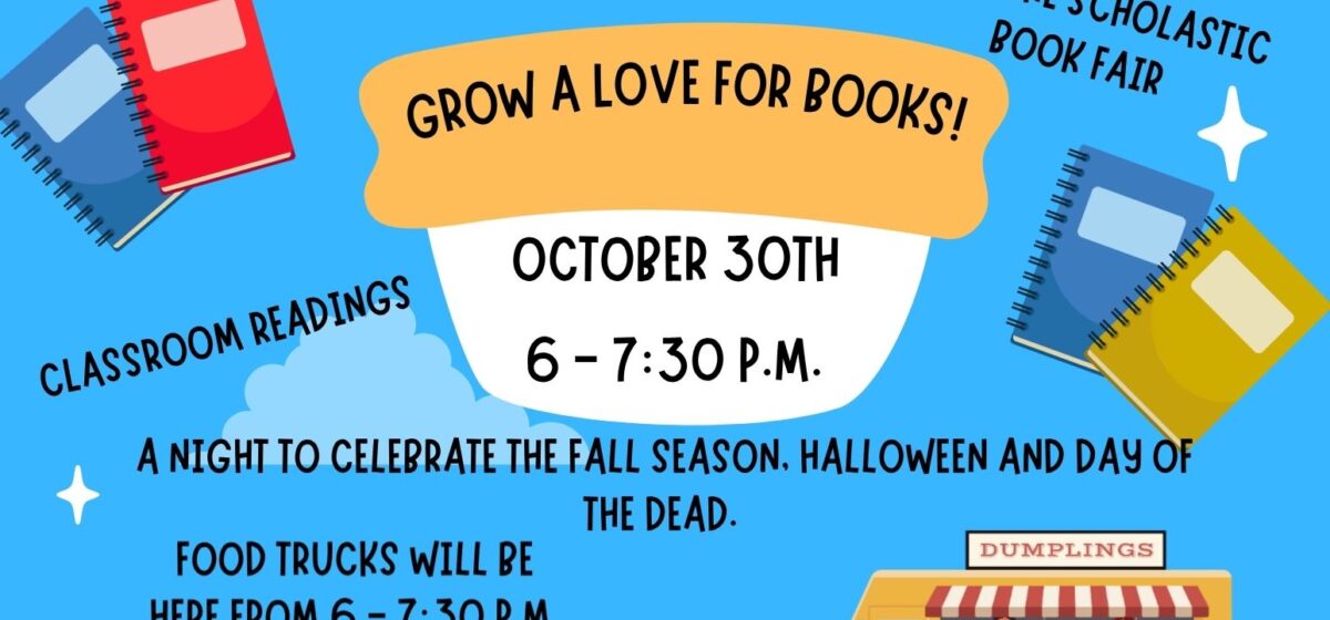 We will have fun activities, special readings, Scholastic Book Fair and yummy food trucks to purchase something delicious from 6-7:30pm.