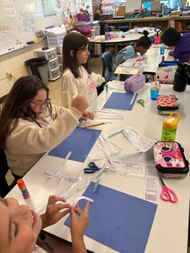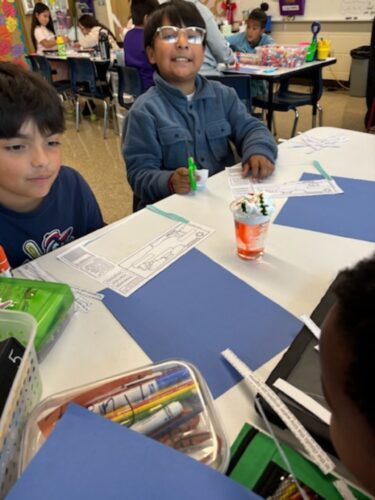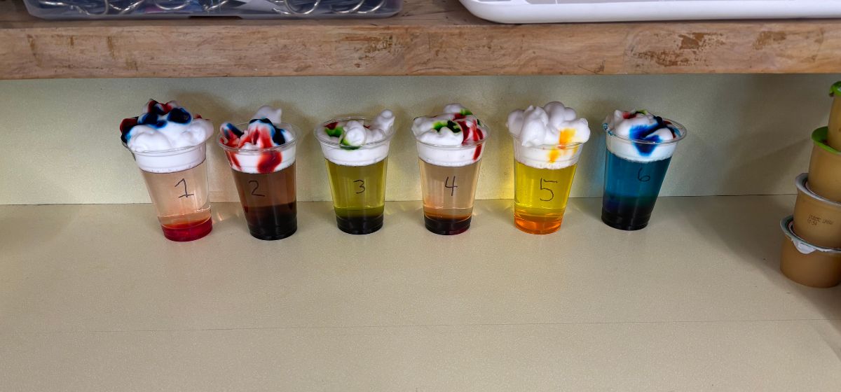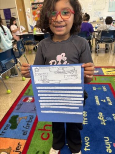 Los estudiantes de tercer grado participaron en un divertido experimento científico para comprender el ciclo del agua. Primero, representaron el ciclo con sus cuerpos. Luego, participaron en dos actividades diferentes. Mientras pequeños grupos realizaban el experimento científico, el resto de los estudiantes organizaron los pasos del ciclo del agua. Para el experimento científico, llenaron un vaso con agua y rociaron crema de afeitar sobre él para simular una nube. Colocaron colorante alimentario sobre la crema. Cuando la nube se saturó, cayeron gotas de lluvia de colores. Los estudiantes realmente disfrutaron mucho de este memorable experimento.