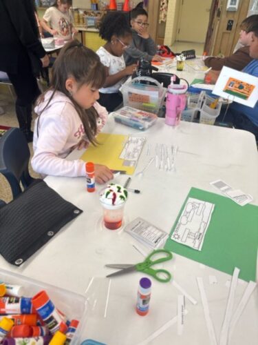 Third grade students participated in a fun science experiment to make sense of the water cycle. First the students acted out the water cycle with their body. Then the students participated in two different activities. While small groups participated in the science experiment, the rest of the students organized the steps in the water cycle. For the science experiment, students filled a cup with water. They shaving cream was sprayed on the top to act like a cloud. Food coloring was placed on top of the shaving cream. When the cloud became saturated, it rained down colored raindrops. The students really enjoyed this memorable experiment.