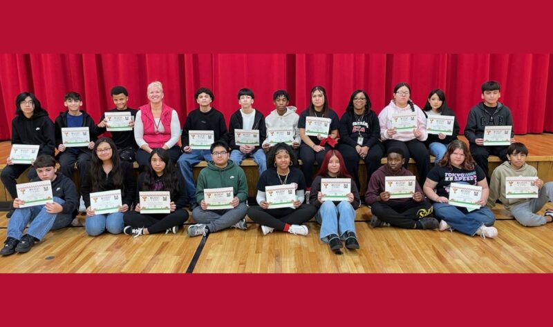 La escuela de Waldo MS celebra a los estudiantes por su trabajo excepcional en la ciudadanía, el atletismo, los estudios y las clases electivas. En noviembre, 61 estudiantes fueron elegidos por el personal de Waldo. Cada estudiante fue honrado con un certificado y regalos. ¡Buen trabajo, Wildcats! ¡Sigan con el buen trabajo!